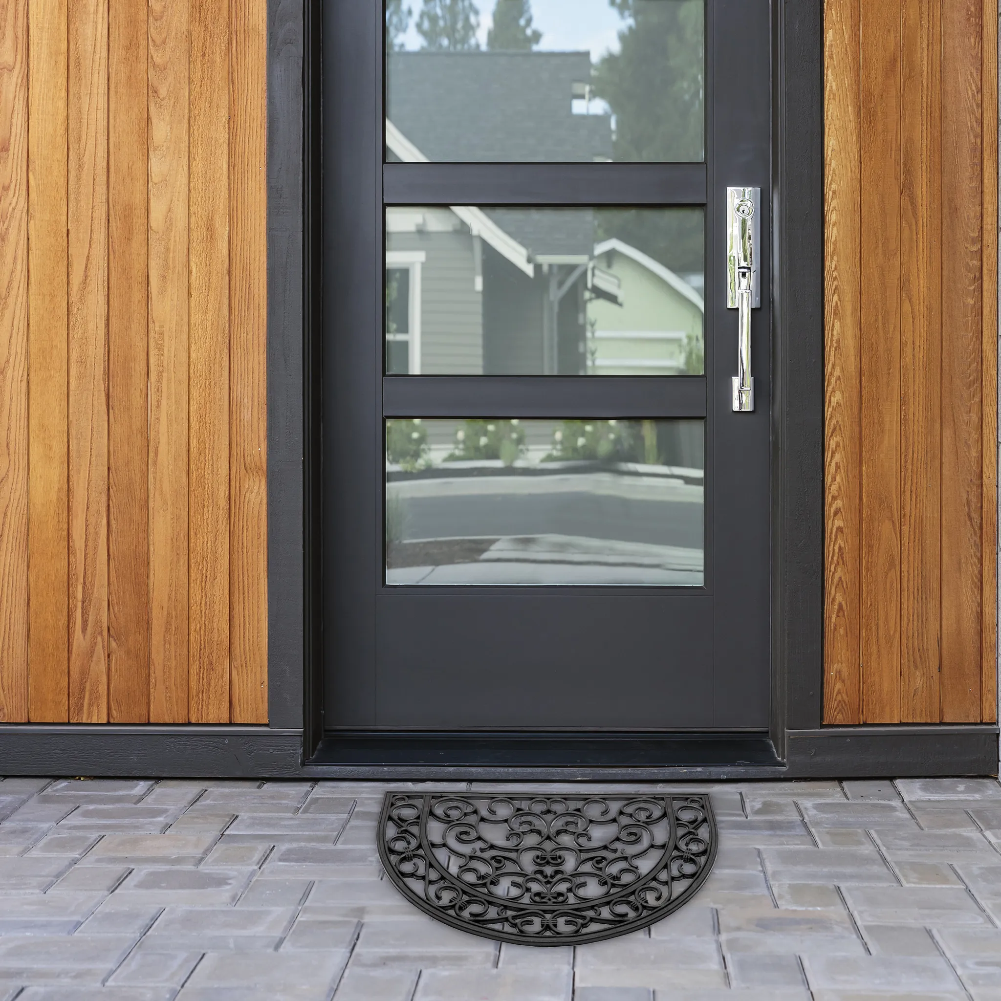 - Stilvolle, wunderschön gemusterte Gummimatte mit floralen Ornamenten im Gusseisen Design. Für den Außen- und Zwischenbereich. Ein echter Blickfang