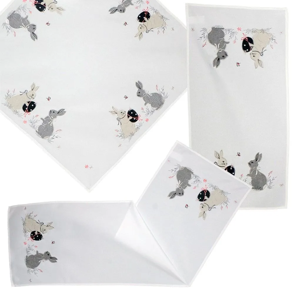 Die festlich bestickte Tischwäsche-Serie AMANDA ist als Tischdecke & Tischläufer eine ideale Wahl für eine stilvolle Oster- und Frühlingsdekoration. Mit kunstvoll gestickten Hasen, liebevoll gestalteten Ostereiern & fein gearbeiteten Applikationen bringt sie verspielte Eleganz auf deinen Tisch. Die harmonischen Farben und filigranen Details sorgen für ein einladendes Ambiente zu Ostern oder bei frühlingshaften Kaffeetafeln. Ob als Mitteldecke auf dem Esstisch, als Tischläufer auf dem Wohnzimmertisch oder als saisonales Highlight auf der Kommode – AMANDA verleiht deinem Zuhause eine fröhliche Note & ist ein echter Hingucker. Die hochwertige Verarbeitung aus 100 % Polyester garantiert Formstabilität, Farbbrillanz & eine besonders pflegeleichte Handhabung. Einfach bei 30 °C maschinenwaschbar, schnelltrocknend & bügelleicht bleibt die Tischwäsche auch nach vielen Waschgängen in Topform. Kombiniere AMANDA mit weiteren Osteraccessoires wie Kerzen, Zweigen oder Porzellanfiguren & gestalte dein Zuhause liebevoll für die Osterzeit. Ideal für alle, die klassische Motive mit einem frischen Frühlingsgefühl verbinden möchten.