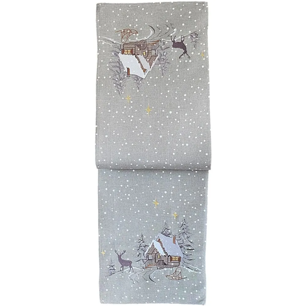 Die Tischdecke & der Tischläufer BILLIE bringen mit ihrer kunstvollen Stickerei eine winterliche Atmosphäre in dein Zuhause. Das liebevoll gestaltete Motiv zeigt eine idyllische Schneelandschaft mit Berghütte, verschneiten Tannen und einem sternklaren Winterhimmel – ein echtes Highlight für die kalte Jahreszeit. Die detailreiche Verarbeitung macht BILLIE zum festlichen Blickfang auf Esstisch, Sideboard oder Beistelltisch. Die harmonische Farbgebung in Blau, Weiß und warmen Erdtönen fügt sich wunderbar in klassische & gemütliche Einrichtungsstile ein. Hergestellt aus hochwertigem Polyester, überzeugen Tischdecke & Tischläufer durch ihre pflegeleichte, langlebige Qualität. Das Material ist formbeständig, farbecht & knitterarm – ideal für den täglichen Einsatz oder festliche Anlässe wie Advent, Weihnachten oder Winterdinner. Beide Varianten lassen sich bei 30 °C in der Maschine waschen, trocknen schnell & behalten auch nach mehreren Wäschen ihre ansprechende Optik. Ob als saisonales Highlight auf deinem Tisch oder als liebevoll gestaltetes Wohnaccessoire – mit BILLIE bringst du winterlichen Zauber in dein Zuhause & sorgst für ein stimmungsvolles Ambiente in der schönsten Zeit des Jahres.