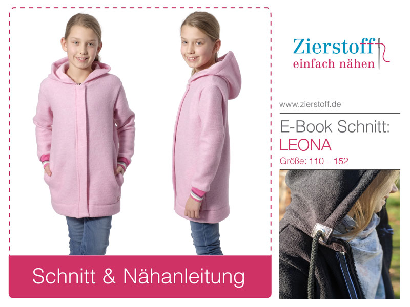 Nähanleitung & Schnitt für eine Jacke mit Kapuze und Reißverschluss “LEONA”, Gr. 110-152