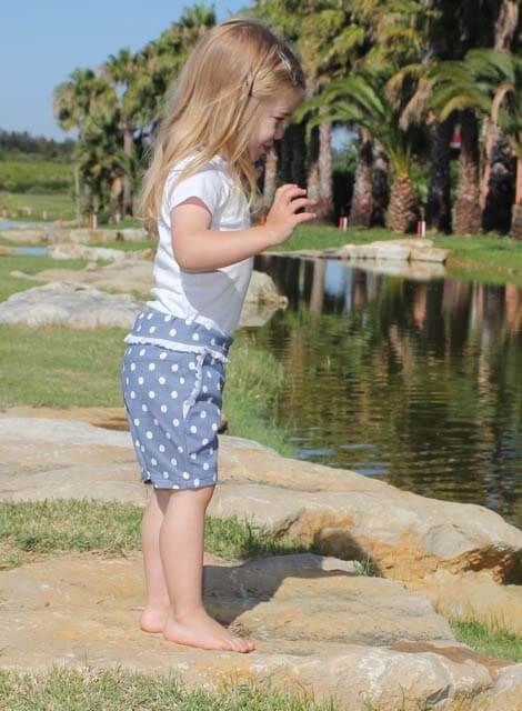 In diesem Schnitt sind zwei Schnitte beinhaltet. Ein Schnitt für blutige Anfänger mit Bündchenverarbeitung. Ein weiterer Schnitt für Fortgeschrittene mit einer Fake RV Verarbeitung. Wenn Du sie einmal genäht hast, wirst Du sie sicher noch ganz oft nähen! Die Hose sieht durch unterschiedliche Stoffe und Verarbeitungsmöglichkeiten auch immer wieder anders aus. Du kannst die Hose in kurz oder in lang nähen, dadurch ist sie das ganze Jahr über einsetzbar. (Wer diese Hose gerne für sehr schmale Kinder nähen möchte, kann sich das Modell Clara einmal anschauen…)