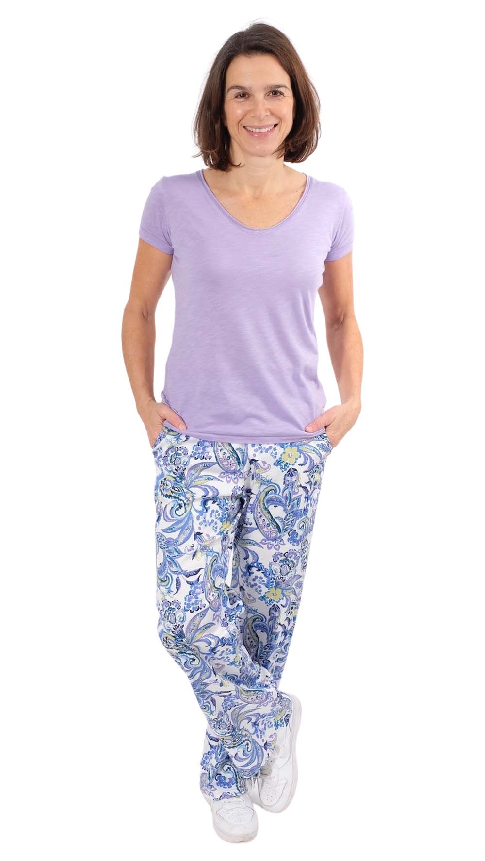Diese gerade geschnittene Hose ist ein toller Begleiter durch das ganze Jahr. Ob mit oder ohne Taschen, als lange oder auch als 7/8 Hose, sie wird immer wieder anders aussehen! Die Jacke Tatjana und Tino oder auch das Shirt Shaine sehen hier auch gut dazu aus.