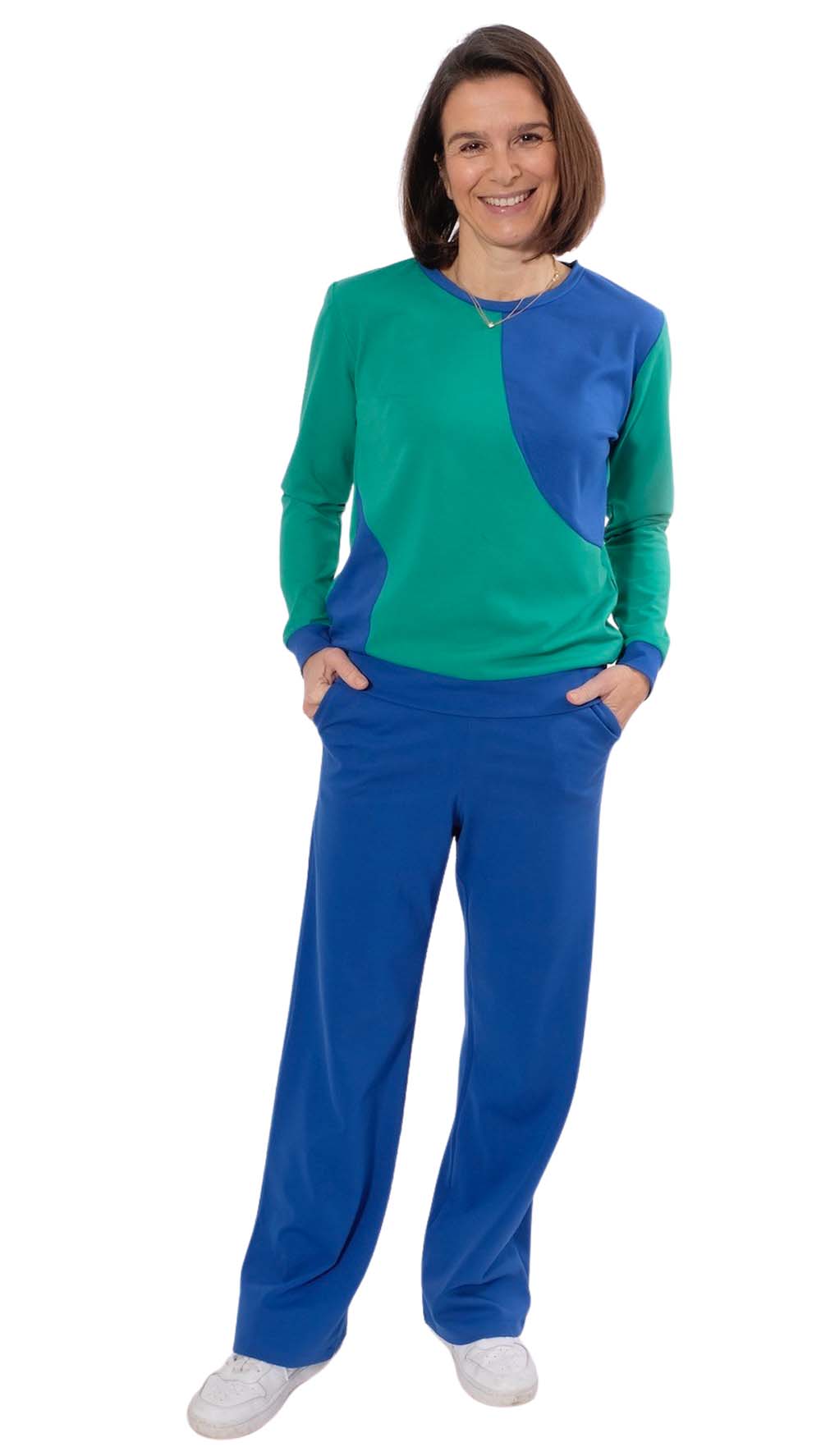 Stoffempfehlung für diesen Style: Alle elastischen Stoffe können vernäht werden. Wir empfehlen hier Romanitstoffe / Punta die Roma, elastische Mischgewebe, Strickdenim oder dehnbare Cordstoffe. Zu steife Stoffe eignen sich hier nicht. Auch weiche, dehnbare Lederqualitäten eignen sich hier super. Wer die Hose etwas legerer haben möchte kann sie sich ganz einfach eine Nummer größer zuschneiden!