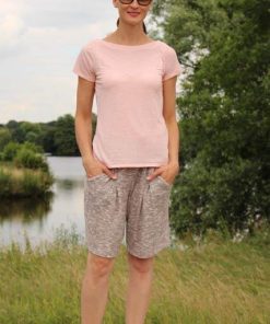 Dies ist eine wunderschöne, kurze Hose für den Sommer. Du kannst sie mit oder ohne Taschen nähen, beides ist möglich. Vom Prinzip her kannst Du für dieses Modell alle Stoffe verwenden, sie sollen nur fließend sein. Trau Dich hier ruhig ran, es ist ein wunderschönes Anfängerprojekt!