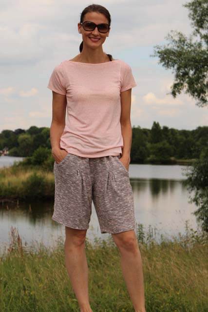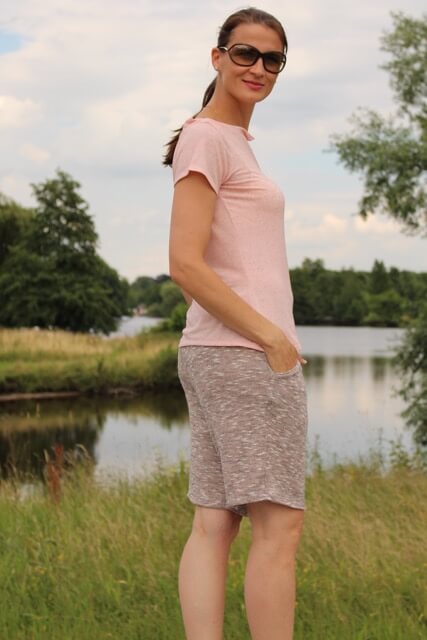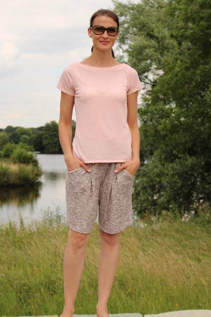 Dies ist eine wunderschöne, kurze Hose für den Sommer. Du kannst sie mit oder ohne Taschen nähen, beides ist möglich. Vom Prinzip her kannst Du für dieses Modell alle Stoffe verwenden, sie sollen nur fließend sein. Trau Dich hier ruhig ran, es ist ein wunderschönes Anfängerprojekt!