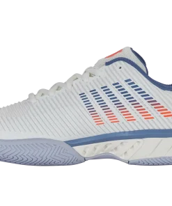 Der Hypercourt Express 2 bietet mit wenig Gewicht Performance, maximalen Komfort und Atmungsaktivität und ist daher die ideale Wahl für Spieler aller Niveaus und Spielstile. Das Durawrap Flex-Obermaterial bietet hervorragenden Halt ohne Einlaufzeit, während die Surgelite-Zwischensohle ganztägigen Komfort garantiert. Die Außensohle, die für alle Oberflächen geeignet ist, einschließlich Hartplätzen, hat weniger tiefe Rillen und ein Drehkreuz für schnelle Bewegungen auf dem Platz. Mit der Aösta 7.0-Gummimischung und Dragguard 7.0 in stark beanspruchten Bereichen ist diese Schuh dauerhaft und langlebig. Das 180 PSC Plantar Support Chassis sorgt für zusätzliche Stabilität, während die Ortholite-Technologie für Feuchtigkeitsregulierung sorgt. Über K-Swiss Seit 1966 ist K-Swiss führend im Bereich leistungsorientierter Sportschuhe und bekannt für seine Innovation und zeitloses Design. K-Swiss-Schuhe bieten herausragende Qualität, Langlebigkeit und fortschrittliche Technologie, und sind von Athleten auf der ganzen Welt geschätzt.