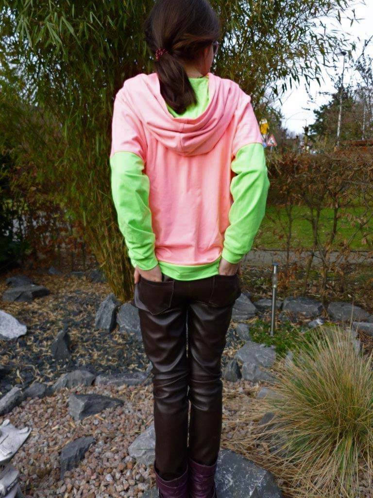 Eine Jegging (engl. aus Jeans und Leggings) ist eine Legging, die durch entsprechendes Material, Farbe und Muster das Aussehen einer hautengen Jeans-Hose imitiert aber den Komfort einer Legging bietet. Für Erwachsene haben wir die Hose nur mit einem Stoffbund konzipiert. Hochelastische Stoffe, d.h. bi-elastische Stoffe sind hier die Voraussetzung für eine optimale Passform!!! Sehr schön sieht es auch aus wenn man die Vorderseite aus Leder und die Rückseite aus Romanitstoffen zuschneidet. Fortgeschrittene können die Hose auch einfach abändern indem sie die Saumweite ab dem Knie etwas ausstellen, und dann auch noch mit Schlitz verarbeiten..