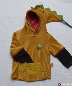 Dieser wunderschöne dehnbare Jerseystoff mit einer Cordoptik kommt nicht nur bei Kindern sehr gut an. Kleider, Shirts, Hosen, Mützen und vieles mehr lässt sich hier wunderbar daraus nähen. Die kreativen Möglichkeiten sind vielfältig. Schnittmuster Drachenpullover Tommy und Jegging Hannah.