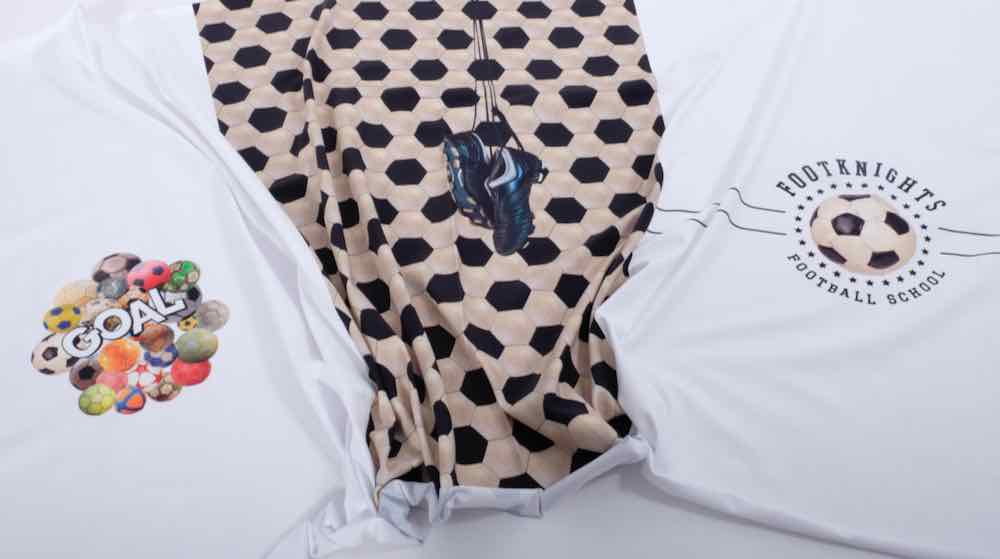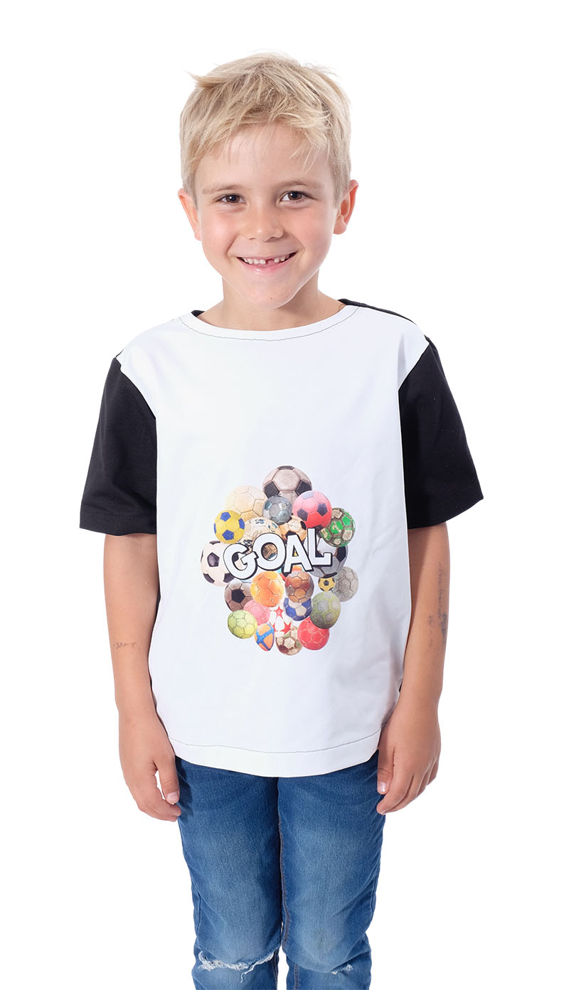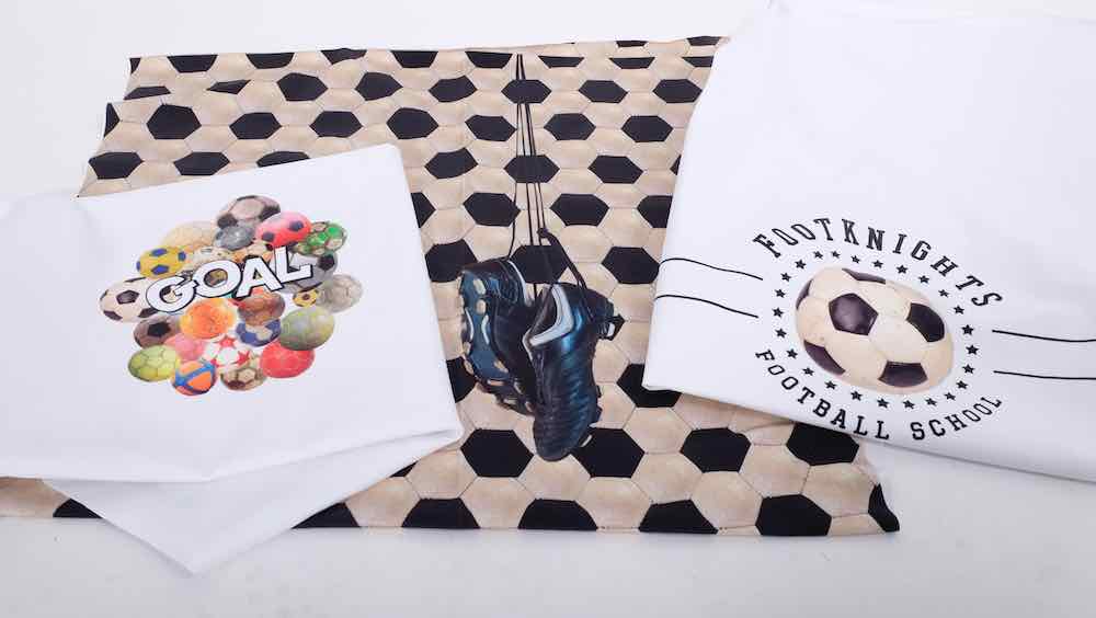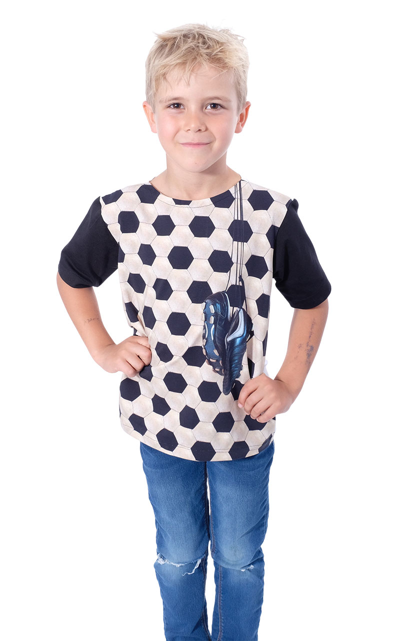 Hochwertiger Jersey aus Baumwolle/Elasthan Fußbällen bedruckt. Das Material ist ideal für Hosen, Shirts, Mützen, Loopschals, Pumphosen und vieles mehr. Die Maße von diesem Panel sind 75 cm hoch und 150 cm breit. Es lassen sich hier Kinder Shirts bis Gr. 158 problemlos zuschneiden. Als Kombistoff empfehlen wir die Farbe Schwarz.
