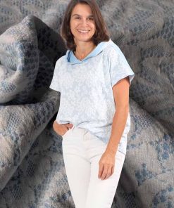Pflege: Auf 30 Grad waschen und mit niedriger Temperatur bügeln.