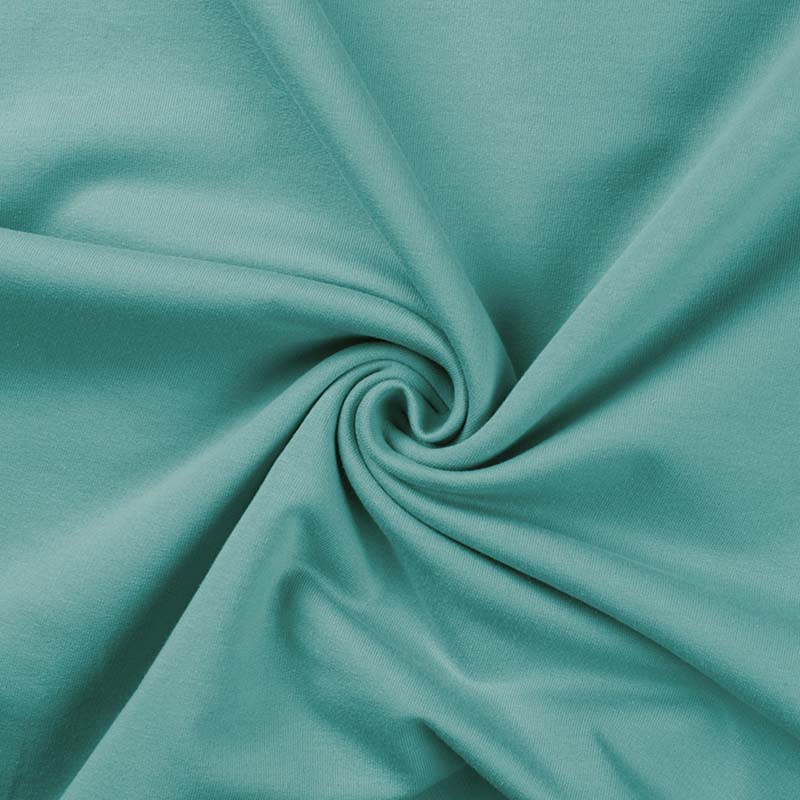 Ein hochwertiger Single-Jersey aus Baumwolle/Elasthan in einem Mint. Der Jersey eignet sich ideal für Kleider, Shirts, Hosen, Beanie Mützen, Loopschals, Pumphosen und Jogginghosen. Abbildung Troyer Pullover Jasper.