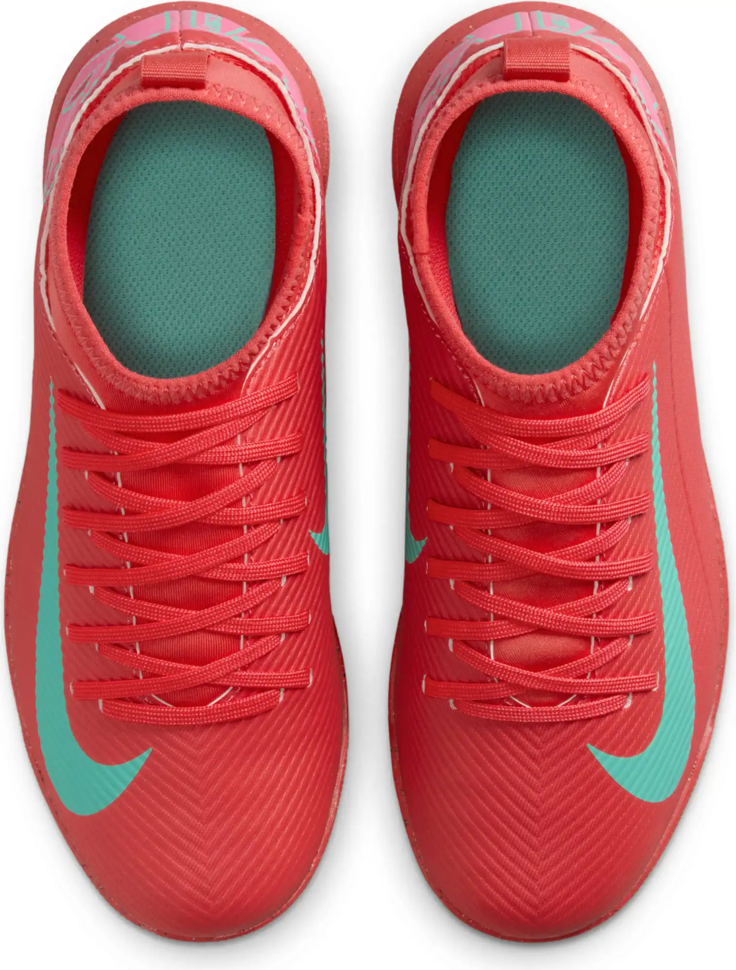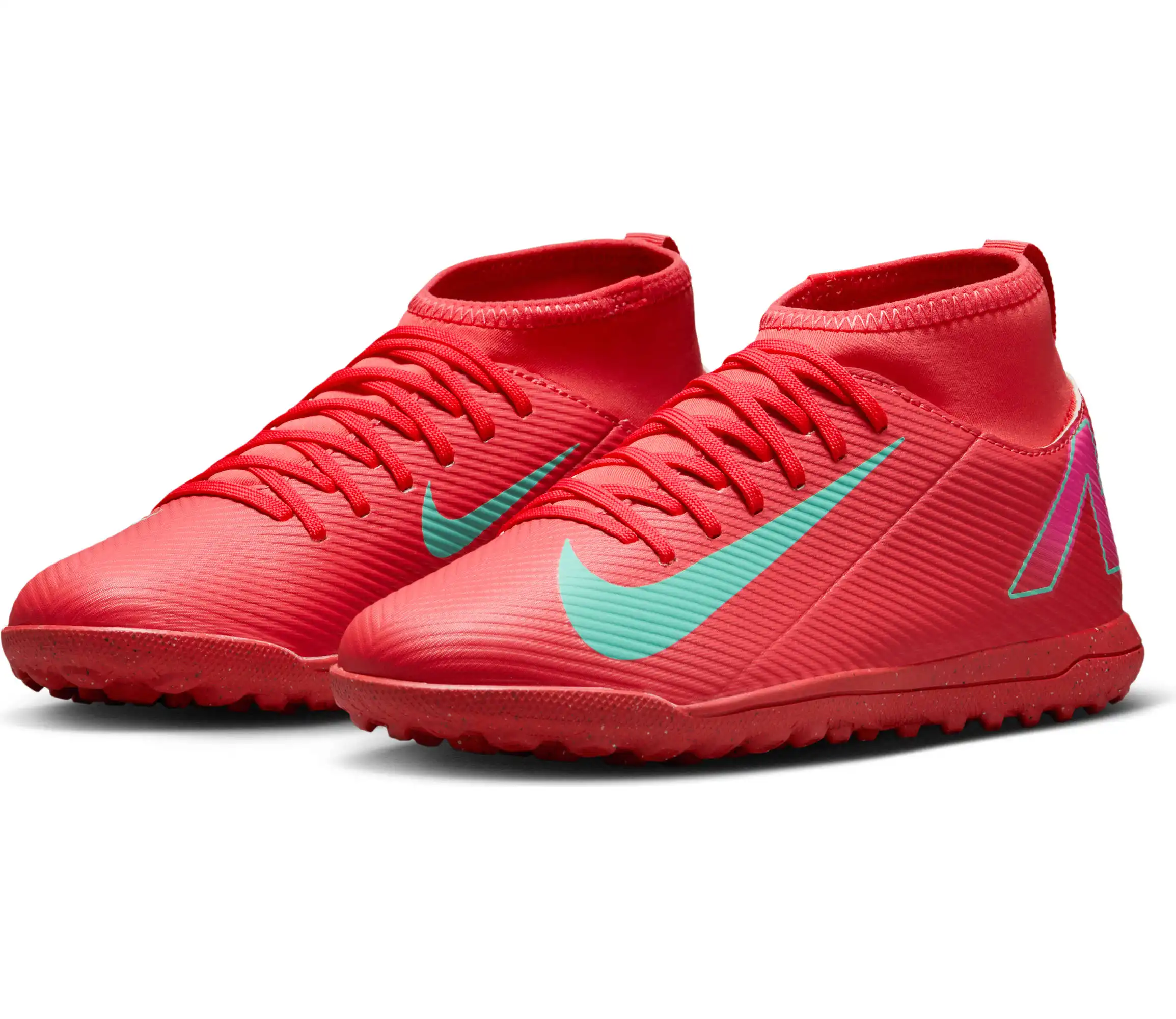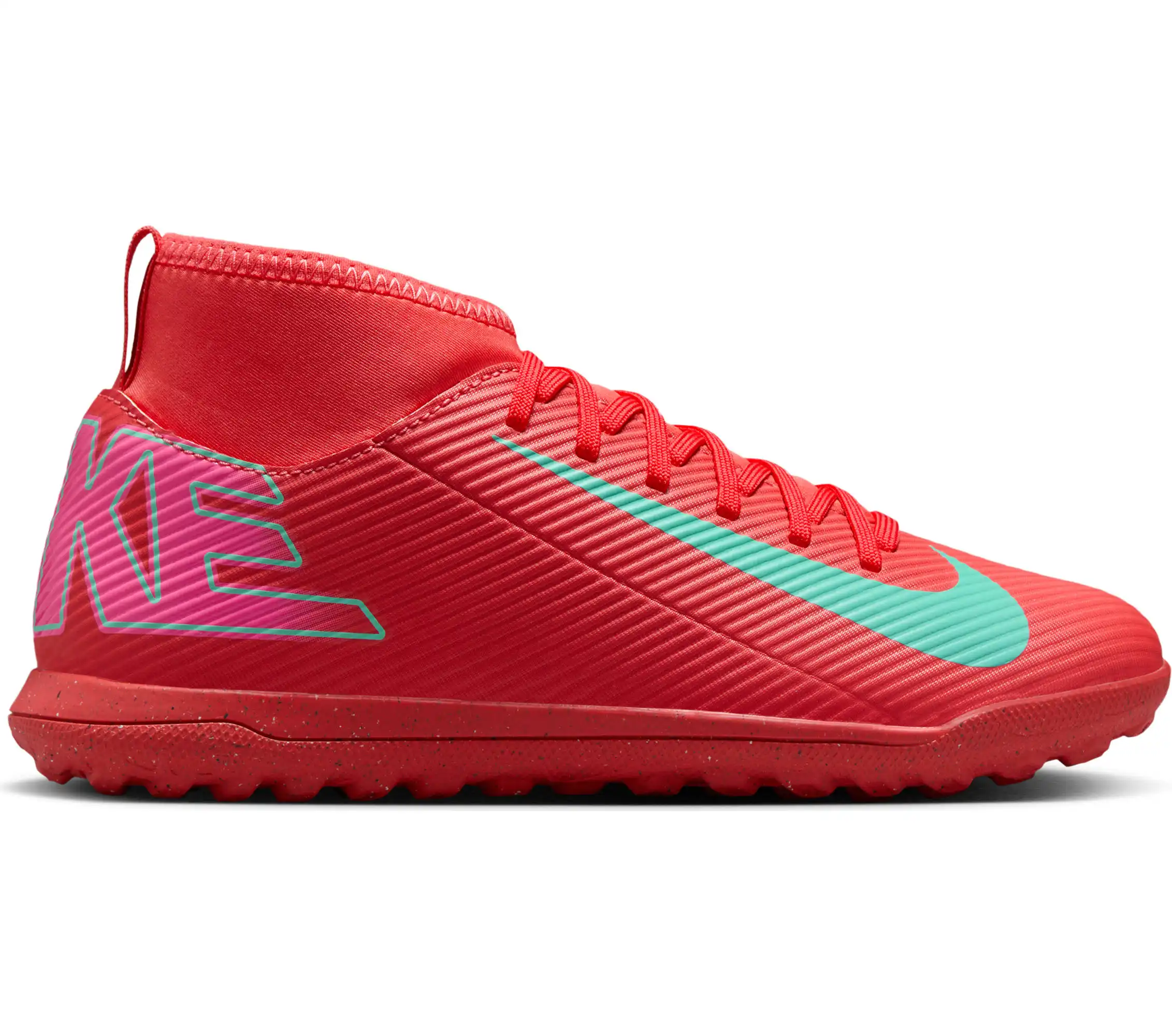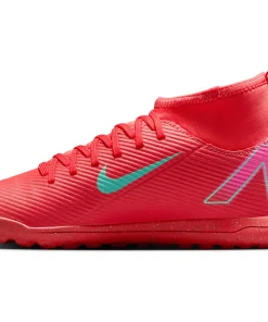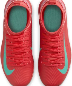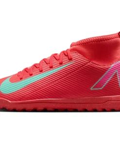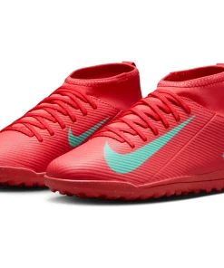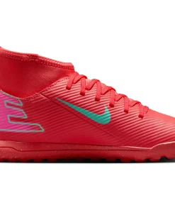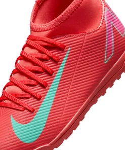 Nike Jr. Mercurial Superfly 10 Club TF High-Top-Fußballschuhe für jüngere/ältere Kinder Egal, ob du gerade anfängst oder einfach nur zum Spaß spielen willst ? mit den Club Schuhen kommst du auf den Platz, ohne Kompromisse in Sachen Qualität einzugehen. Mit dem Nike Jr. Superfly 10 kannst du Gas geben und den Ball direkt ins Netz kicken. Außerdem sorgt das Kunstleder im Obermaterial für Grip, wenn du bei hohen Geschwindigkeiten dribbelst. Los geht's! Weiches Tragegefühl Das Kunstleder im Obermaterial ist mit kleinen, strukturierten Details versehen, die für guten Grip sowie für bessere Ballkontrolle beim schnellen Dribbeln sorgen. Schnelle Traktion Die Gummi-Außensohle bietet Traktion auf Rasenplätzen. Unkomplizierte Passform Das bequeme Futter umschließt den Fuß für ein natürliches, eng anliegendes Tragegefühl. More Details Klassische Schnürsenkel Ideal für den Einsatz auf kurzen Kunstrasenplätzen Gedämpfte Innensohle