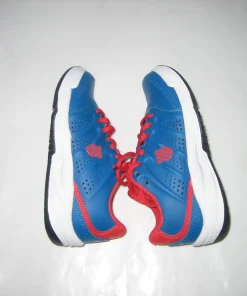 Bei dem Kindertennisschuh K-Swiss Ultrascendor Omni handelt es sich um einen Leder-Tennisschuh in blau rot.
