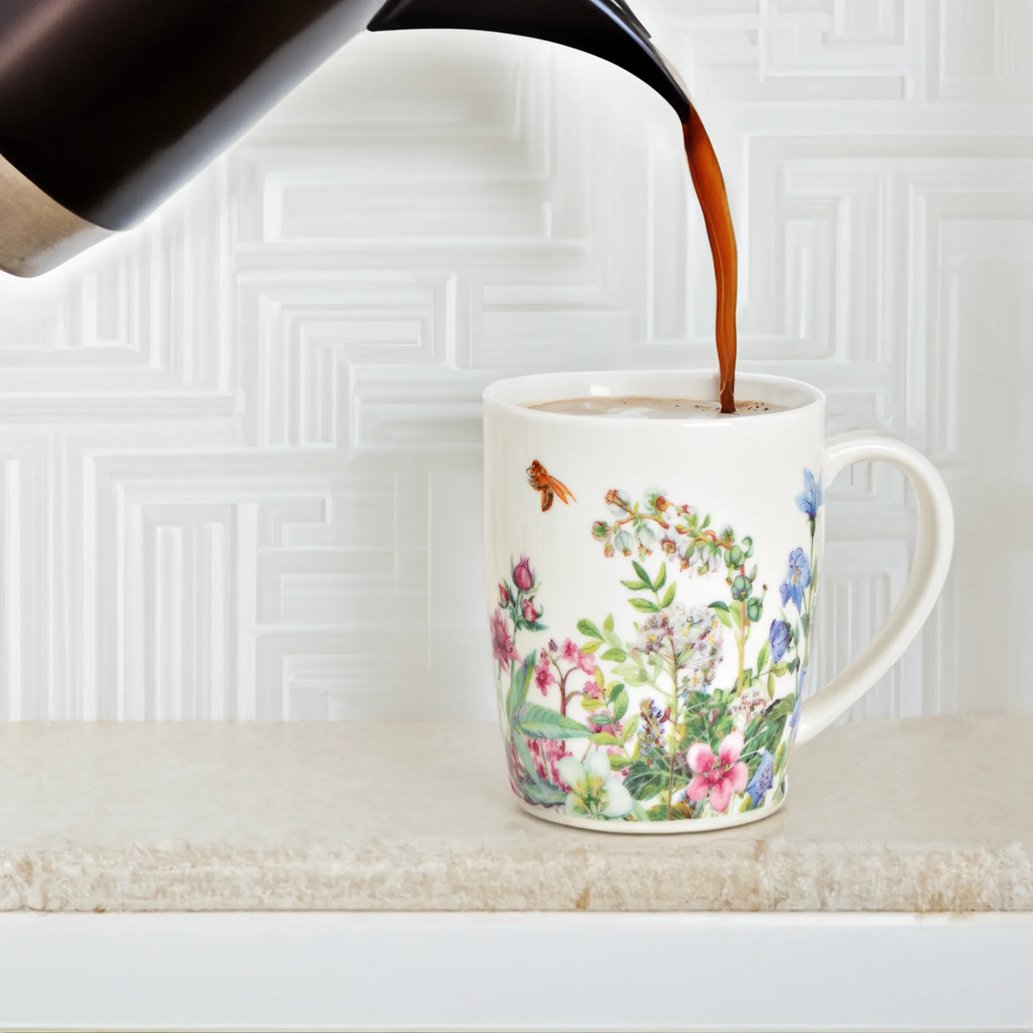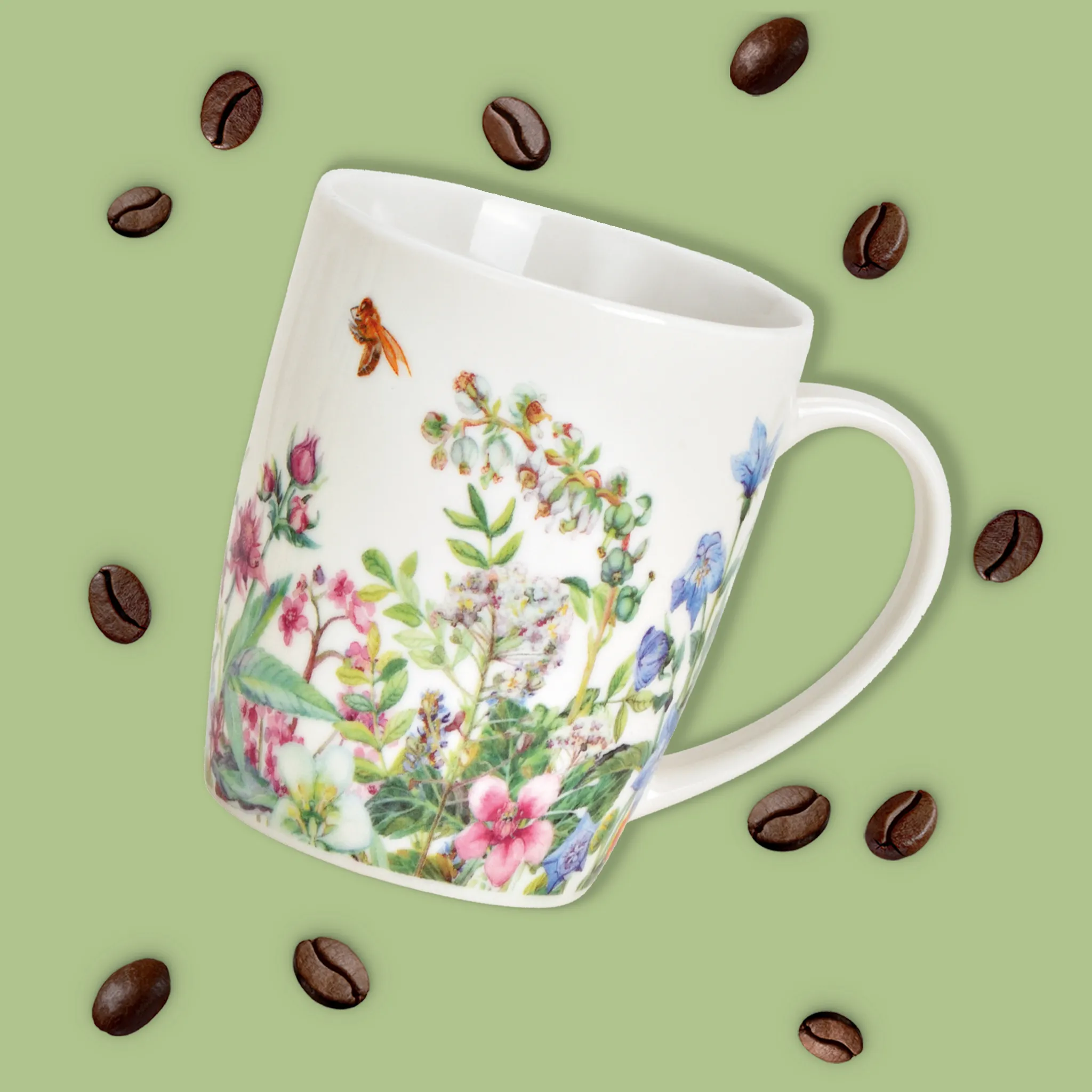 • Diese Tassen mit bunten Wildblumen und einer kleinen Biene schaffen ein schönes Ambiente an deinem Kaffeetisch