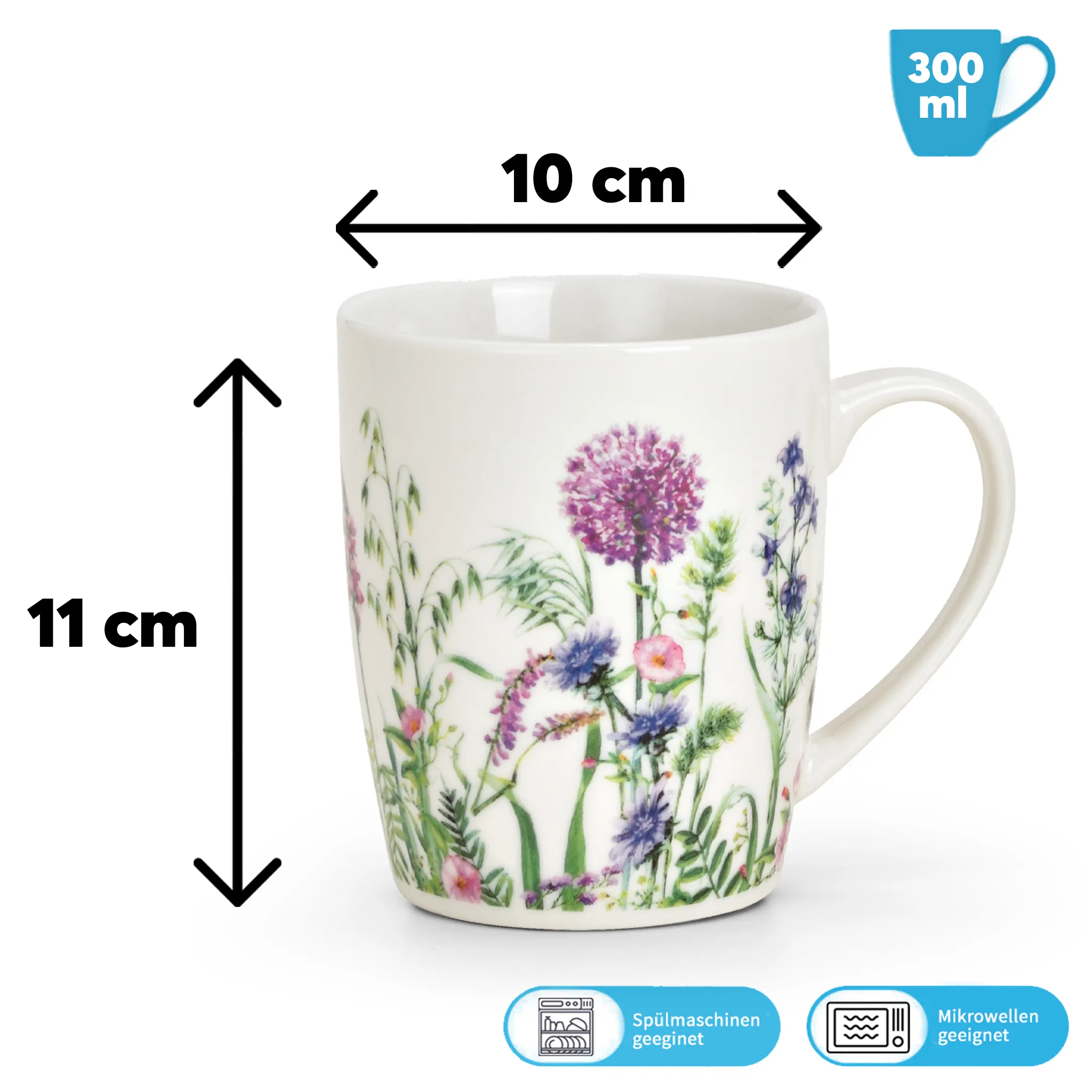 Kaffeebecher Wildblumen & Biene Kaffeetassen Porzellan bunt 36 Stk. 10 cm