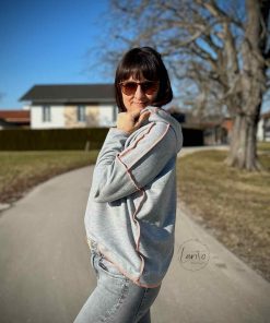 Dieses leicht oversized Shirt ist ein toller Begleiter durch das ganze Jahr. Ob Du es aus einem oder aus verschiedenen Stoffen nähst, es wird immer wieder anders aussehen. Du kannst Dir auch wie hier gezeigt Bündchen annähen.