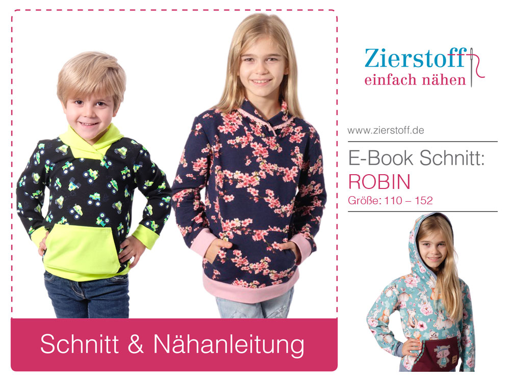Nähanleitung & Schnitt unisex Kapuzensweatshirt “Robin”, Gr. 110 – 152