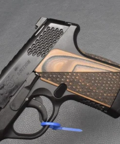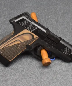 6 Schuß Magazin, Kunststoffgriffschalen in Holz Optik.