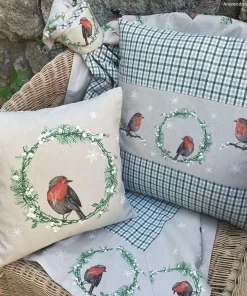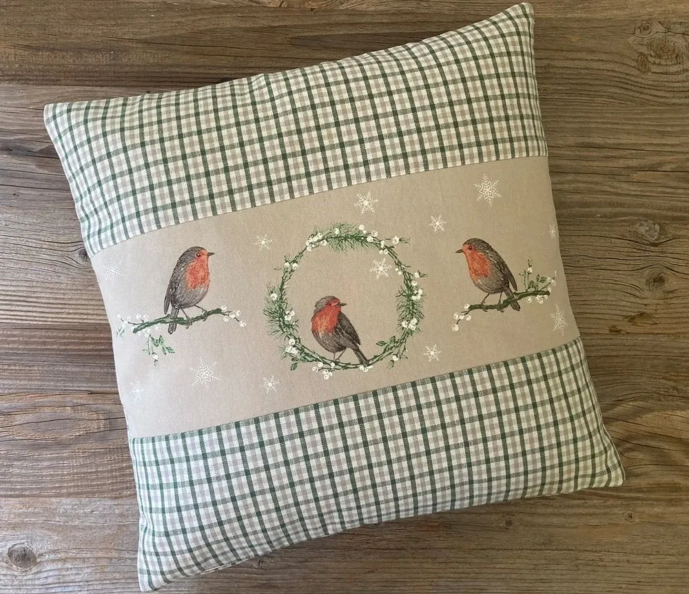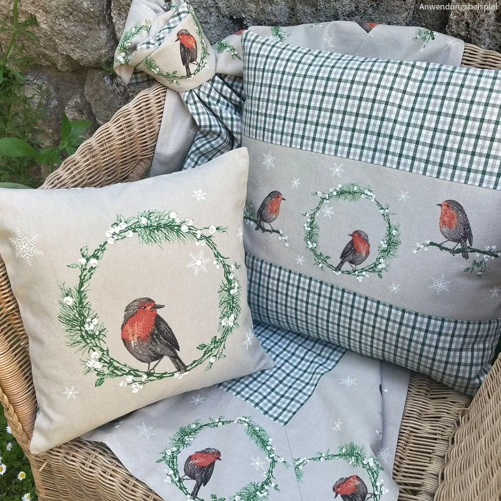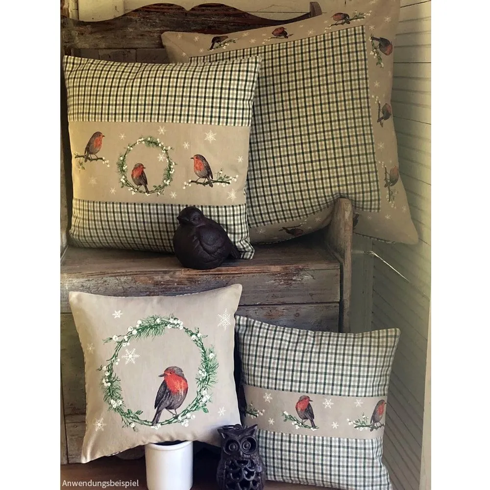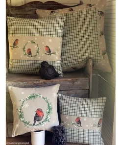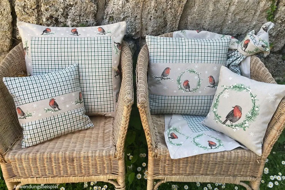 - Kissenhülle / Kissenbezug mit Vogel & Tannenmotiv im trendigen Landhausstil bedruckt – für alle Fans und Liebhaber