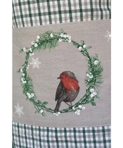 matches21 Kissenbezug Kissenhülle LEILA Vogel & Tanne Karo Bordüre Mitte grün weiß 40×40 cm Landhaus Baumwolle 1 Stk