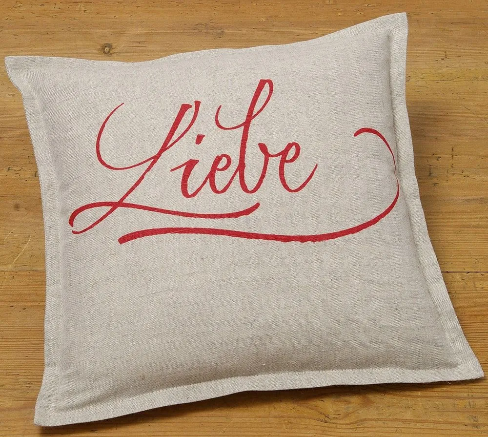 - Kissenhülle / Kissenbezug einfarbig beige mit filigranem Schriftzug LIEBE im trendigen Landhausstil – für alle Fans und Liebhaber