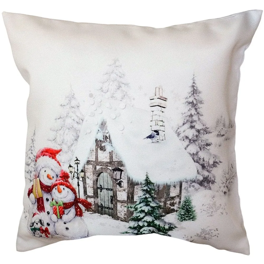 Kissenhülle ROBINA Schneemänner Hund Druck Kissenbezug bunt Poly 40×40 cm