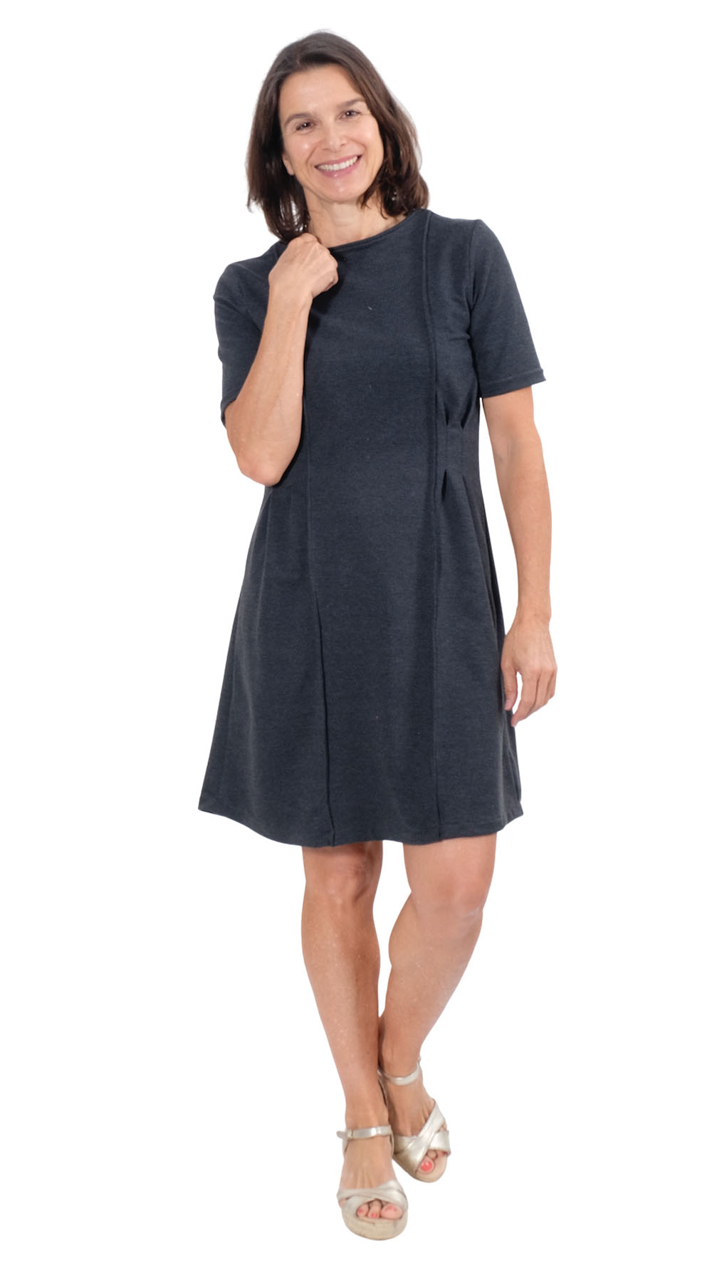 Dieses Kleid mit raffinierten Falten und optional einer Biese im VT sieht nicht nur hübsch aus, sondern ist auch schnell genäht. Es gibt wie immer verschiedene Varianten dafür.