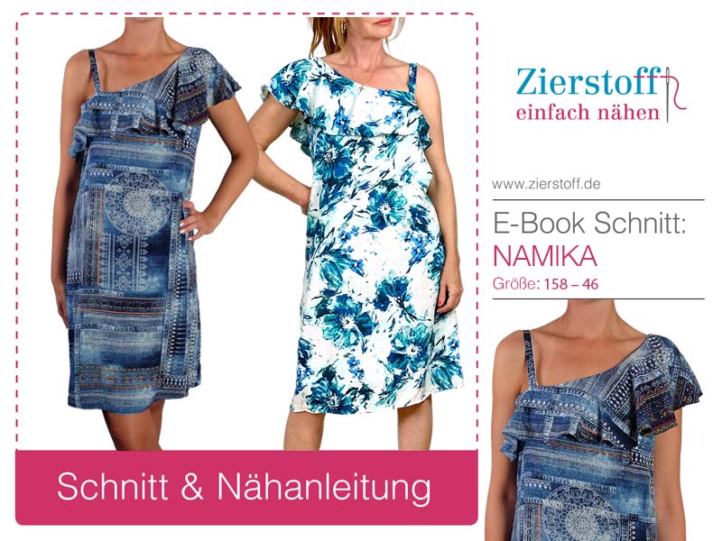 Nähanleitung & Schnitt für das Oneshoulder Kleid “Namika”, Gr. 158 – Damengröße 46