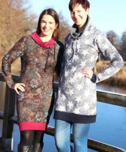 Das Kleid “Thyra” ist ein wirklicher Allrounder, da Du es als Kleid oder Pullover nähen kannst. Je nach Stoffwahl kann es sportlich oder auch ganz chic getragen werden. Ein tolles Projekt für Anfänger, denn es kann hier wenig schief gehen. Ob Du den Kragen mit Kordel und Ösen versehen möchtest, bleibt Dir überlassen. Der Schnitt ist vielseitig einsetzbar und kann elegant oder sportlich gestylt werden. Bitte für das Kleid immer dehnbare Stoffen verwenden. Britta und Ilka tragen beide das Modell in diesem Video. Für Anfänger empfehlen wir dieses Produkt, die Ösen werden nur aufgenäht.