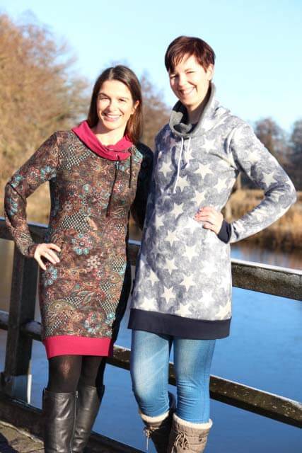 Das Kleid “Thyra” ist ein wirklicher Allrounder, da Du es als Kleid oder Pullover nähen kannst. Je nach Stoffwahl kann es sportlich oder auch ganz chic getragen werden. Ein tolles Projekt für Anfänger, denn es kann hier wenig schief gehen. Ob Du den Kragen mit Kordel und Ösen versehen möchtest, bleibt Dir überlassen. Der Schnitt ist vielseitig einsetzbar und kann elegant oder sportlich gestylt werden. Bitte für das Kleid immer dehnbare Stoffen verwenden. Britta und Ilka tragen beide das Modell in diesem Video. Für Anfänger empfehlen wir dieses Produkt, die Ösen werden nur aufgenäht.