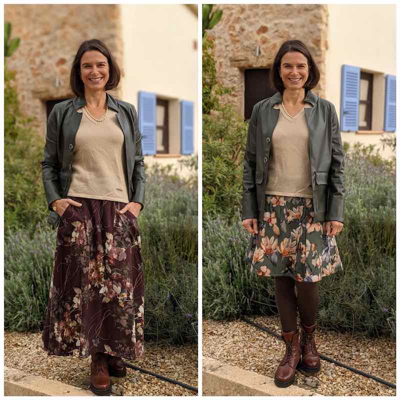 Dieses Kunstleder ist weich und strapazierfähig, somit eignet es sich hervorragend für Taschen, Jacken, Accessoires, Röcke und vieles mehr. Die Rückseite ist velourig. Hosen, Röcke, Jacken und diverse Taschen lassen sich gut aus dem Material herstellen. Abbildung Schnittmuster Blazer Ilse, Tasche Pola, Jacke Kiran und Bennie und Rock Laila in diversen Farben zur Inspiration.