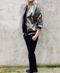 Dieses Kunstleder mit Metallic-Effekt ist weich und strapazierfähig, somit eignet es sich hervorragend für Taschen, Jacken, Windbraker, Accessoires und vieles mehr. Der Griff ist soft und angenehm, es lässt sich hervorragend einfach verarbeiten, auch mit der normalen Nähmaschine. Abbildung Schnittmuster Windbreaker Dunja, Collegejacke Bennie und Beuteltasche Pola in Blau und Taupe. Abbildung Schnittmuster Collegejacke in Silber. Abbildung Schnittmuster Yalene und Puffer Tasche Saphira in Farbe Schwarz und Taupe. Dieses Leder eignet sich auch hervorragend für unsere Tasche Valeska.