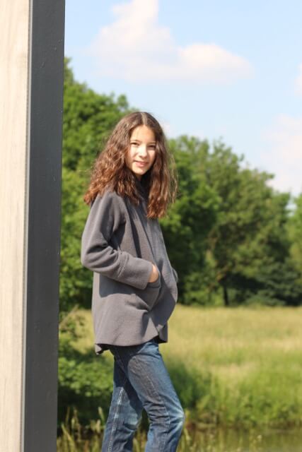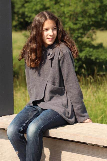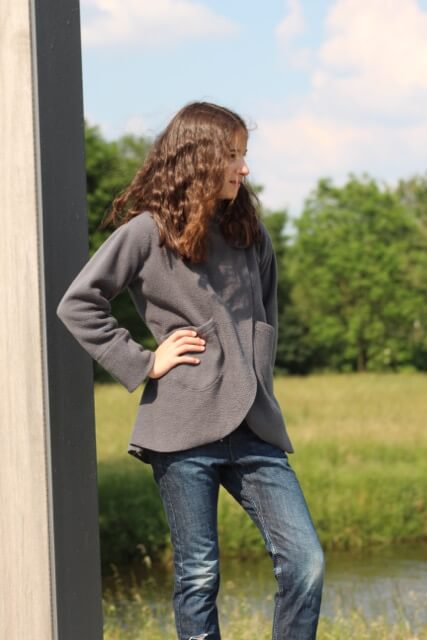 Diese Mädchenjacke sieht nicht nur hübsch aus, sondern ist auch noch sehr bequem und kuschelig. Sie macht jede Bewegung mit und sieht selbst beim Klettern noch gut und raffiniert aus. Ein echter Hingucker auf dem Spielplatz. Die leicht tailliert geschnittene Jacke ist ein idealer Begleiter für die Übergangszeit, denn ein dicker Pullover passt auf jeden Fall auch noch darunter. Genäht ist sie sehr schnell und einfach, also absolut anfängertauglich.