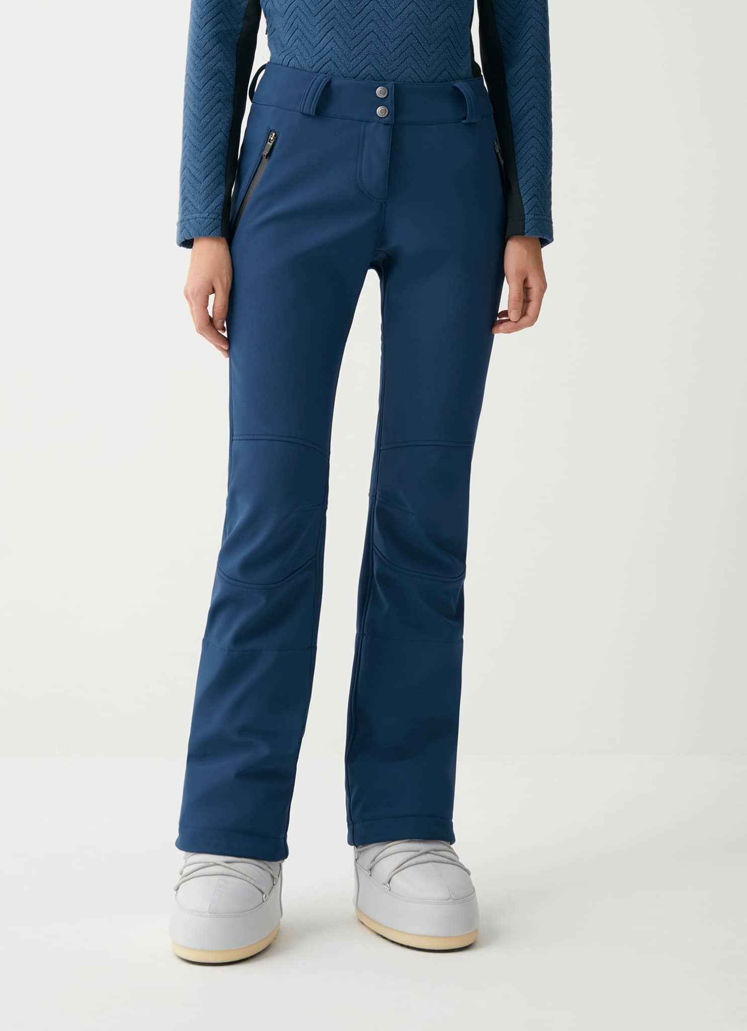 Funktionale und bequeme Damen-Skihose aus elastischem Softshell-Gewebe mit einer atmungsaktiven Membran (10.000 g/m²/24), die eine Wasserdichtigkeit von 10.000 mm Wassersäule garantiert. Die sorgfältige Studie der Nähte entlang der Hüfte und an den Knien ermöglicht eine bessere Passform, auch dank der Elastizität des technischen Gewebes, das außen aus Stretch-Jersey und innen aus weichem Fleece-Futter besteht. Damit können Sie Ihre Tage im Schnee in vollen Zügen genießen. Die ökologisch nachhaltige, wasserabweisende Ausrüstung mit Teflon EcoElite? ist Teil des Projektes Colmar Green Path zum Schutz der Umwelt.
