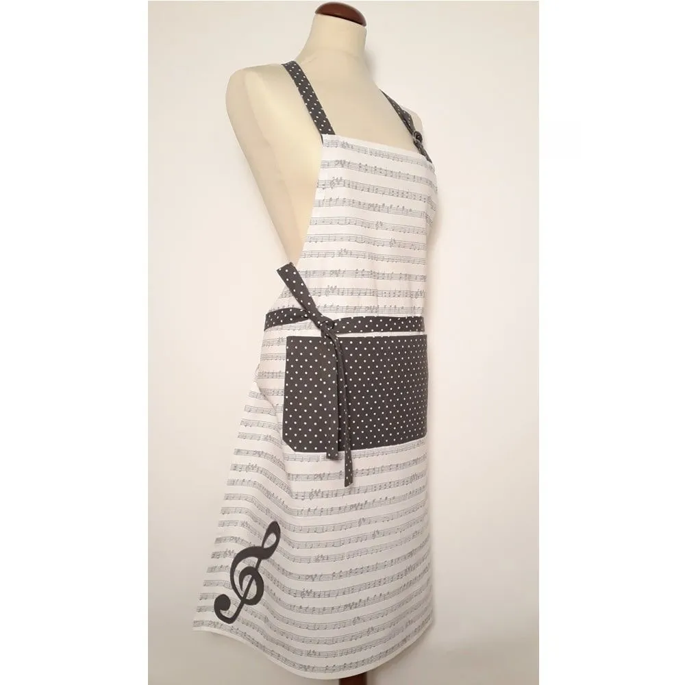 matches21 Latzschürze Schürze Küchenschürze Landhaus KLARA mit Notenzeilen Allover & Tasche Kochschürze Backschürze 1 Stk