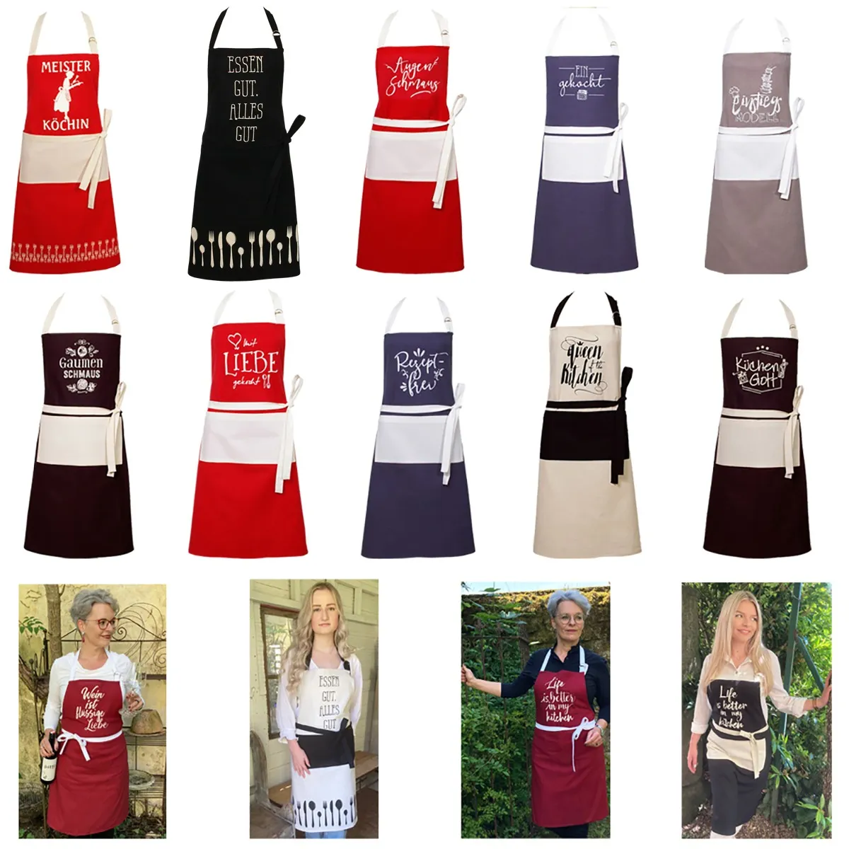 matches21 Latzschürzen Schürzen Küchenschürzen mit Aufschrift Aufdruck Kochschürzen Backschürzen 1 Stk diverse Designs