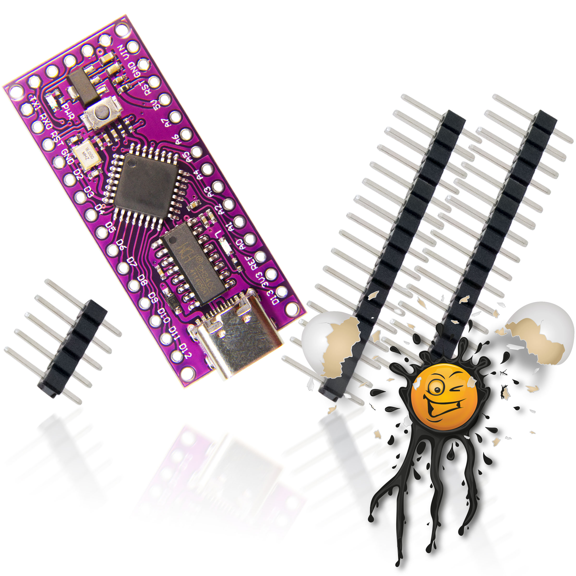 Das LGT8F328P Mini EVB Entwickler – Board mit USB-C Anschluss mit CH340 USB / TTL Konverter und Pinleisten