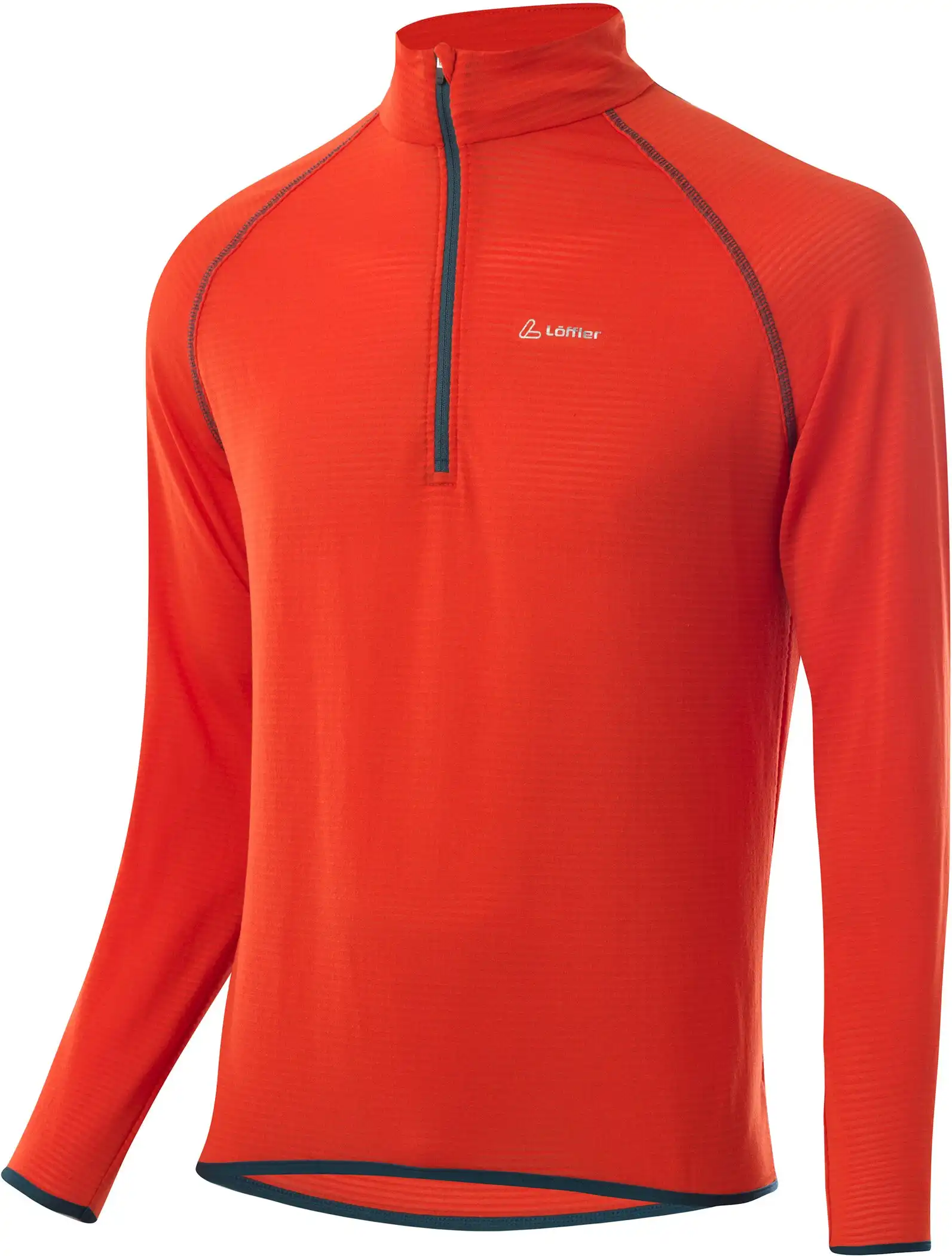 Halfzip mit Stehkragen, leicht, elastisch, atmungsaktiv, schnell trocknend, weiches Fleece mit Querripp, Langarm, gesäumter Arm- und Bundabschluss, Reflektoren.