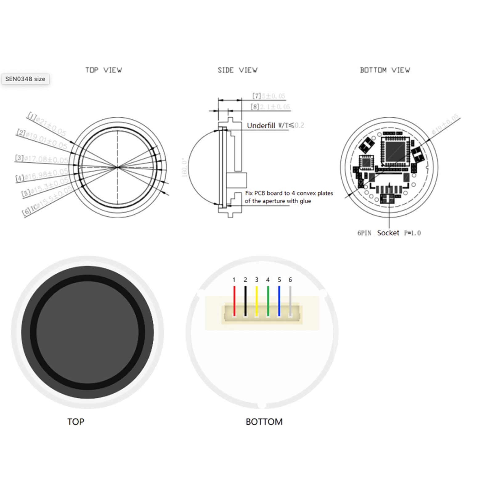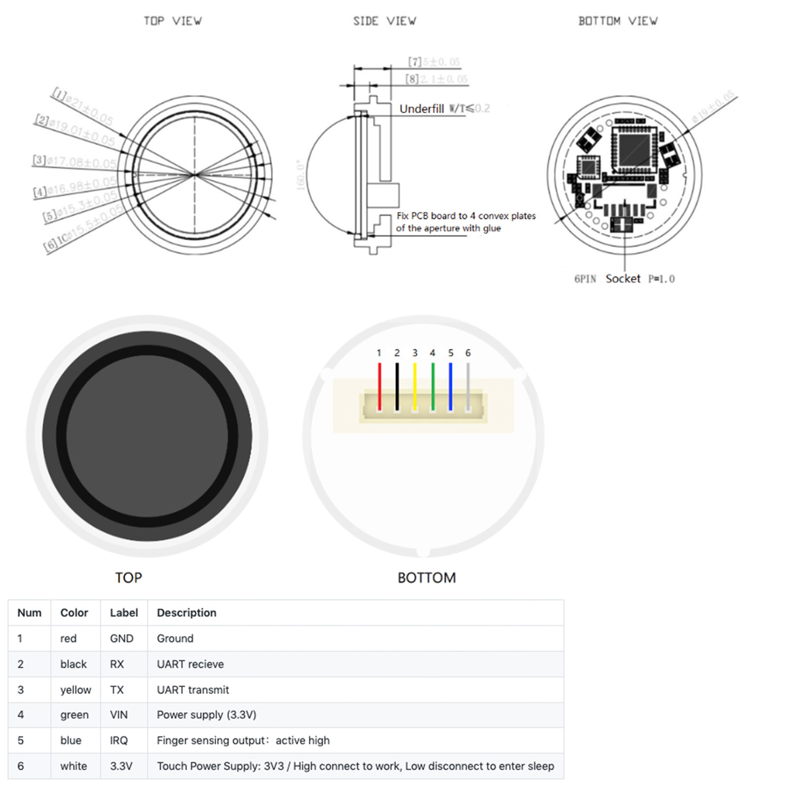 | 6 | white | 3.3V | Touch Power Supply: 3V3 / High connect to work, Low disconnect to enter sleep |