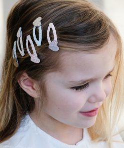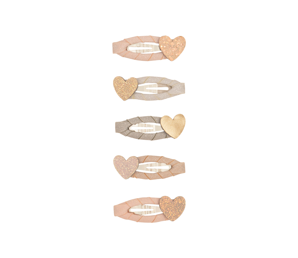 - mit Glitzerstoff bezogene Mini-Klick-Clips in einer hübschen Kombination aus Metallic- und Glitzerherzen