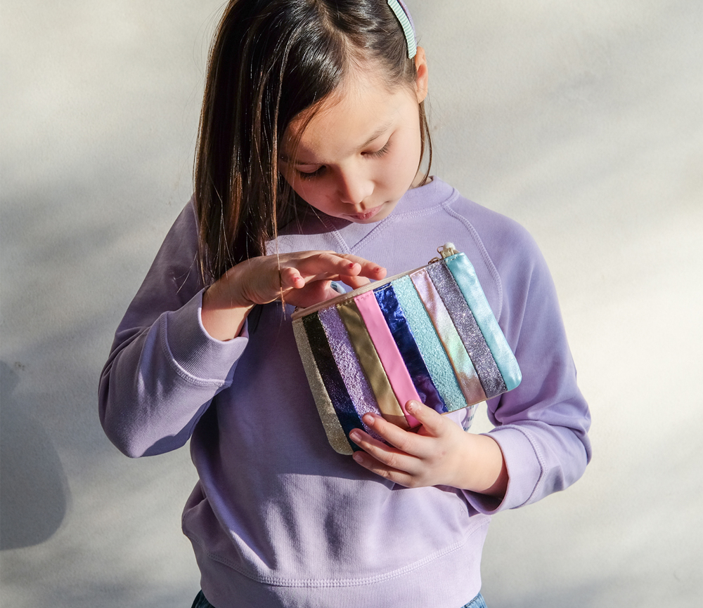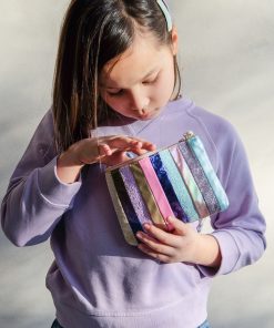 - Hergestellt aus einer kühnen und schönen Mischung aus Glitzer und Metallic-Stoffen mit Reißverschluss oben