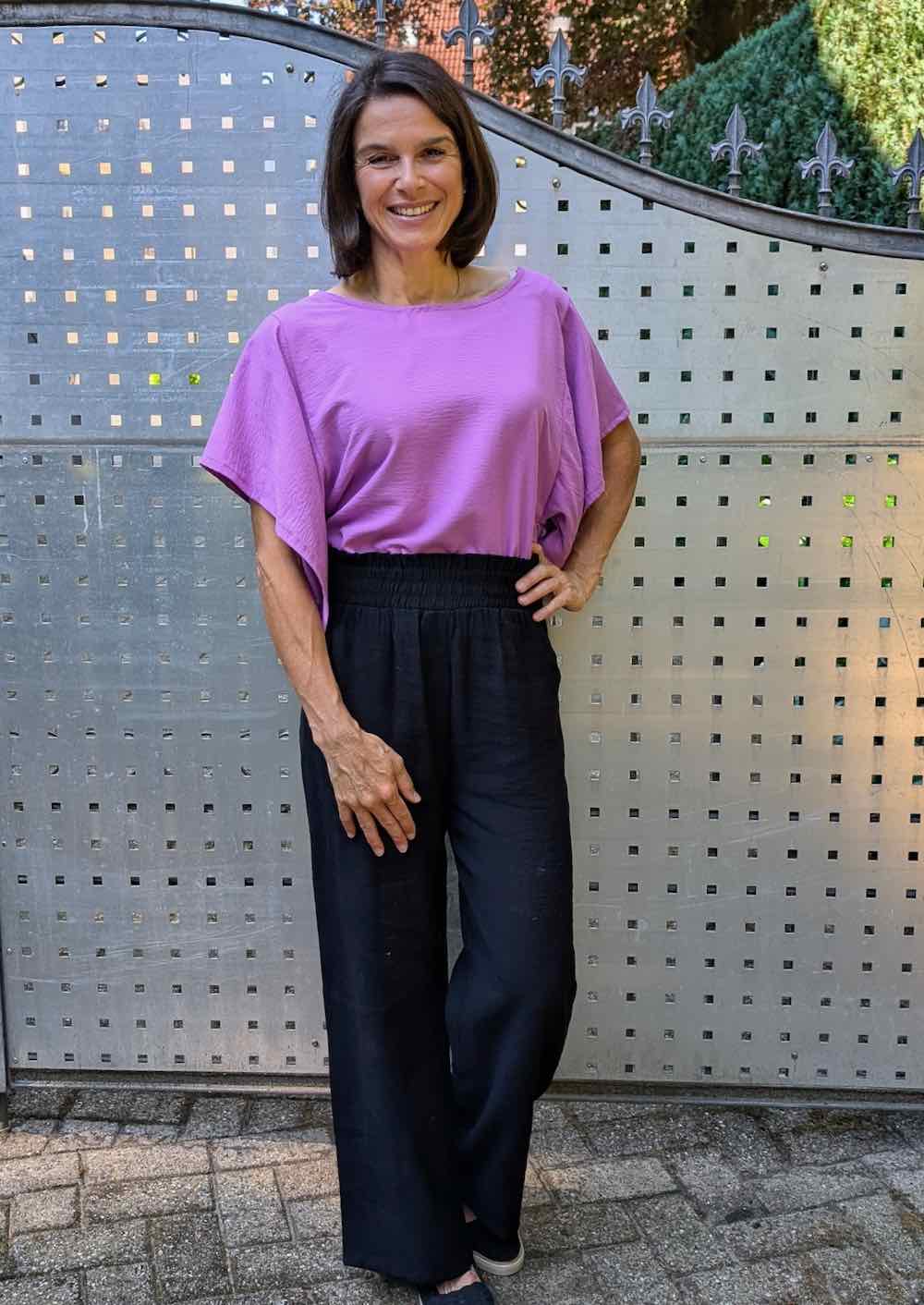 Material: 100% Polyester. Leicht fallend, ideal für Hosen und Kleider.