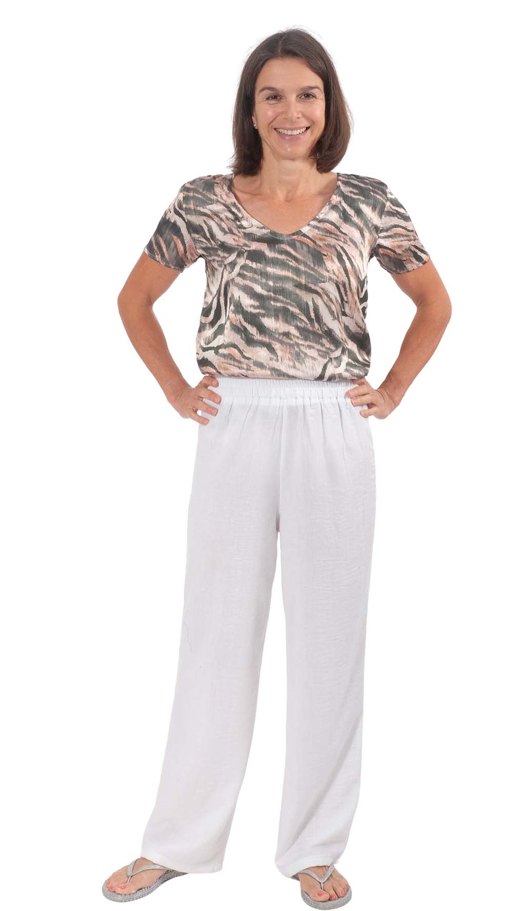 Dieser knitterarme, Leinen ähnliche Stoff ist leicht fallend und hat eine tolle Haptik und fühlt sich toll an. Diese Qualität ist pflegeleicht und bietet einen hohen Tragekomfort. Der Stoff eignet sie sich toll für leichte Sommerhosen, Tunikas, Hemden, Kleider, Röcke und vieles mehr. Abbildung Schnittmuster Hose Frieke, Cargohose Rodja und Kleid Amal.