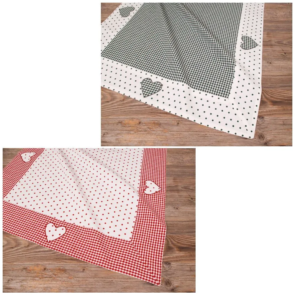 Die Mitteldecke LISE vereint traditionellen Landhausstil mit liebevollen Details. Mit einem klassischen Karo-Muster, dekorativer Borte und einer charmanten Herz-Applikation ist sie die perfekte Wahl für eine gemütliche und stilvolle Tischdekoration. Erhältlich in zwei harmonischen Farben – Rot-Weiß und Grün-Weiß – bietet sie eine vielseitige Gestaltungsmöglichkeit für dein Zuhause.