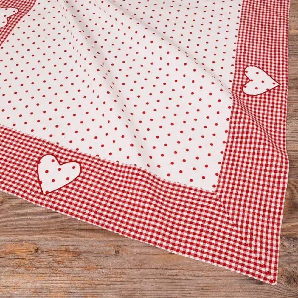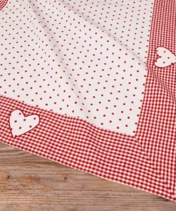 Mitteldecke LISE – Karierter Landhausstil mit Borte und Herz-Applikationen
