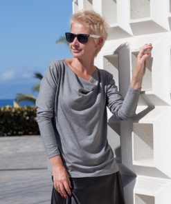 Ein hochwertiger French Terry Stoff aus Modal/Elasthan in Schwarz. Die Rückseite weist die typische Schlingenstruktur auf. Das Material ist ideal für Sweatshirts und Hosen. Er trägt sich angenehm auf der Haut. Abbildung Schnittmuster Fabienne in Grau in French Terry. Aus Jersey diverse Schnittmuster wie z.B. Shirt Sue und Wasserfallshirt Kat, Kleid Maresa, Kleid Sandy, Shirt Sue und Hose Naomi in anderen Farbstellungen. Abbildung Livien in Schwarz. das Kleid AIDA könnt Ihr auch super aus diesem Stoff nähen.