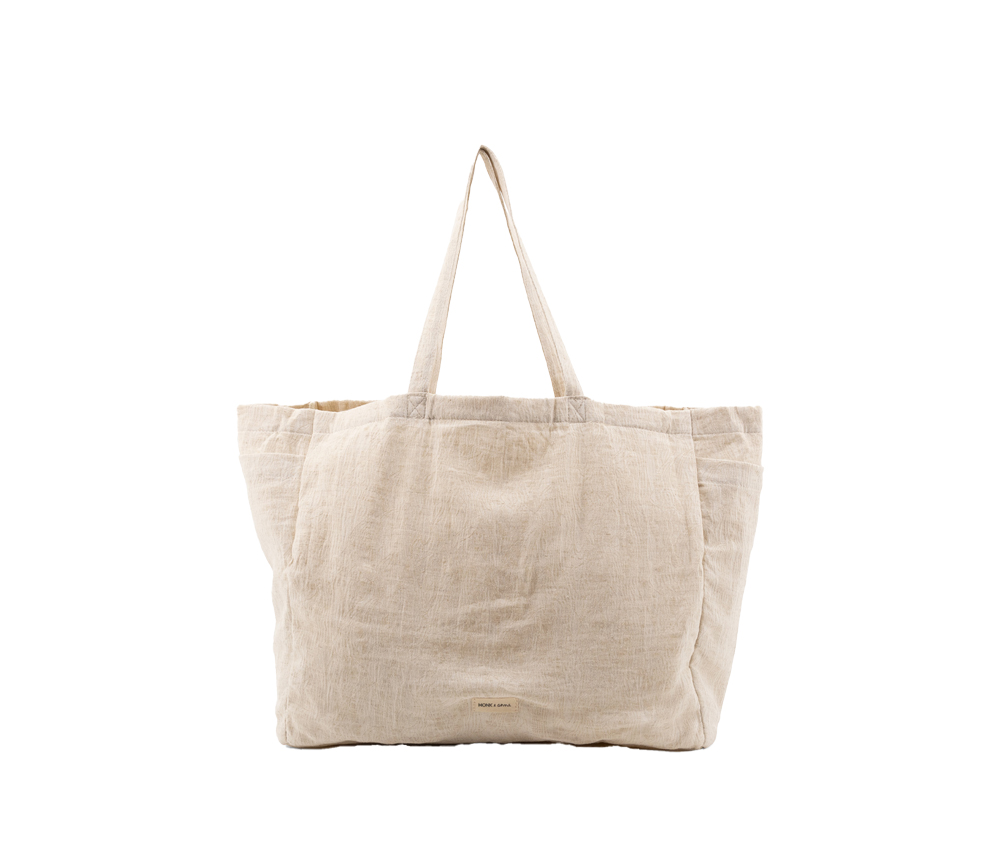 Eine wunderschöne, neutrale, große, robuste Tragetasche aus einem Mix aus Baumwolle und Leinen.
