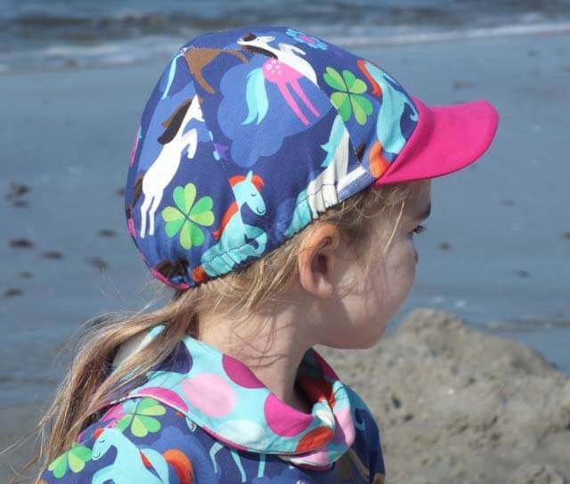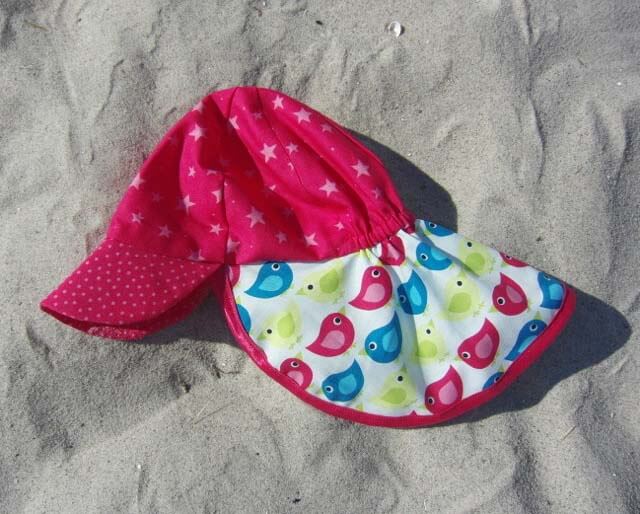 Stoffempfehlung: Weiche Baumwollstoffe für die Mütze mit Nackenschutz, Dehnbare Stoffe oder Jerseystoffe für die Kappe mit Schirm. Du kannst die Kappe mit Schirm aber auch aus nicht dehnbaren Stoffen nähen, das ist auch möglich.