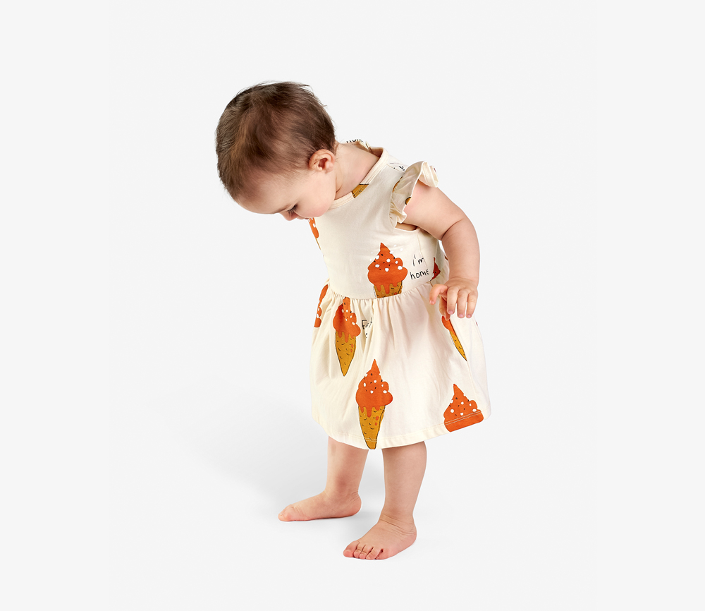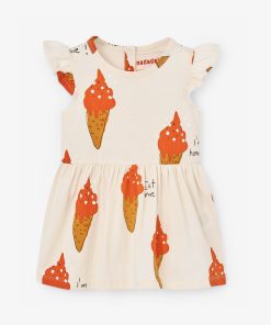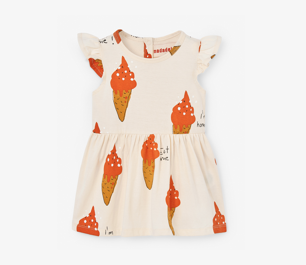 Ach ja, welches Kind liebt nicht Eis? Süßes Kleid für den Sommer, Farbe ist leicht beige mit all-over Print, hochwertige Qualität.