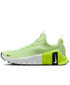 Nike Free Metcon 6 Workout-Schuh für Herren Ob Power-Lift oder Leiter, Gras oder Kies, vom Rasen bis zur Laufbahn ? dein Training ist auf ein bestimmtes Ziel ausgerichtet. Der Free Metcon 6 unterstützt einfach alles. Wir haben unserem anpassungsfähigsten Schuh noch mehr Flexibilität im Vorfuß verliehen und die Ferse mit zusätzlichem Schaumstoff verstärkt. Das bedeutet mehr Freiheit für dynamische Bewegungen bei Sprüngen und Cardio-Kursen. Außerdem hast du eine stabile Basis, was du beim Krafttraining benötigst. Flexibilität: Hoch Je mehr Flexibilität in der Mittel- und Außensohle steckt, desto besser kannst du dich auf natürliche Art und Weise bewegen. Egal ob du springst, plankst oder dich bei Polymetrics verausgabst ? dank der lasergeschnittenen Außensohle hast du eine bessere Flexibilität. Außerdem haben wir den Bereich um den großen Zeh für mehr Beweglichkeit und Schnelligkeit bei ruckartigen Bewegungen abgerundet. Stabilität: Hoch Je stützender der Schuh, desto mehr Stabilität verleiht er deinem Stand. Eine Kombination aus abgestimmtem Halt und gezielt platzierter Dämpfung sorgt bei jedem Schritt für ein sicheres Tragegefühl. Wir haben die Ferse mit mehr Schaumstoff ausgestattet, um die Stabilität beim Training zu verbessern. Dämpfung: Hoch Mehr Dämpfung unter den Füßen ermöglicht ein angenehmeres Training. Die Dämpfung sorgt für Aufprallschutz, wenn deine Füße auf dem Boden aufsetzen. Lasergeschnittener Schaumstoff im Vorfuß und in der Mittelsohle sorgt für Tragekomfort. Atmungsaktives Obermaterial Das Obermaterial besteht aus atmungsaktivem, speziell entwickeltem Mesh mit integriertem Stretch, das dir Halt und Flexibilität bietet ? ob bei Ausfallschritten, Squats oder Sprüngen. Sichere Passform Die Flywire-Fasern sorgen für eine dynamische Passform und geben dir beim Workout sicheren Halt. Das Traktionsprofil für verschiedene Beläge wurde für alle Böden und Aktivitäten entwickelt. Der bequeme Innenschuh verbessert den Halt im Knöchelbereich und sorgt für eine nahtlosere Passform.